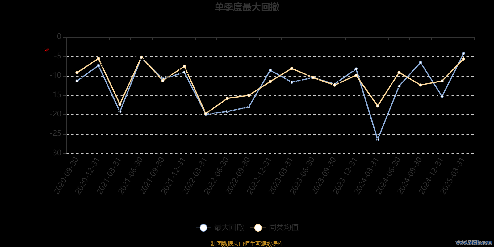 通过所选区间该基金净值增长率分位图,可以观察该基金与同类基金业绩比较情况。图为坐标原点到区间内某时点的净值增长率在同类基金中的分位数。