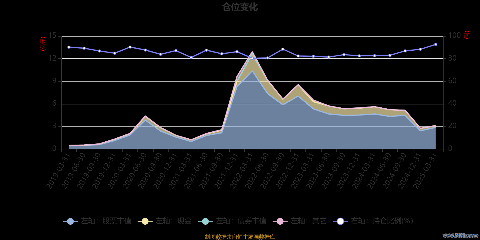 据定期报告数据统计,近三年平均股票仓位为84.48%,同类平均为88.14%。2025年一季度末基金达到92.53%的最高仓位,2022年一季度末最低,为80.26%。