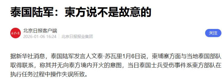 面对泰国的谴责,柬埔寨的反应出乎不少人的意料——没有嘴硬,没有推诿,而是第一时间就主动联系了泰国部队进行解释。柬方明确表示,他们根本没有向泰国境内开火的意图,这次事件纯粹是部队在执行任务过程中操作失误导致的,愿意承担全部责任。